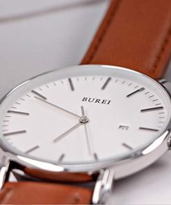 BUREI Ultra Mince Minimaliste Montre Homme Calendrier Chic fenêtre Moderne Simple Grand Cadran Bracelet en Cuir