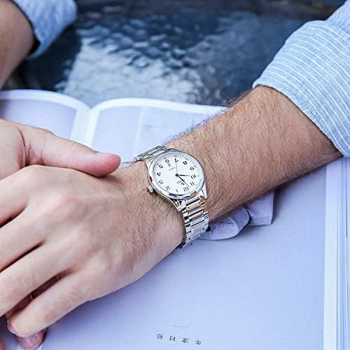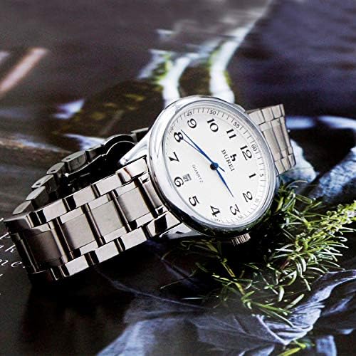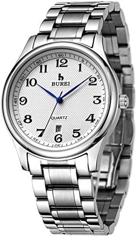 BUREI Hommes Femmes Quartz Montre Date Affichage Blanc/Noir Cadran avec Argent Acier Inoxydable Bande