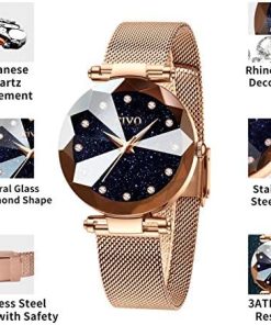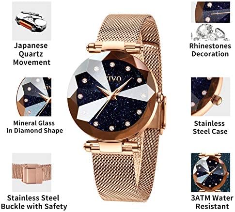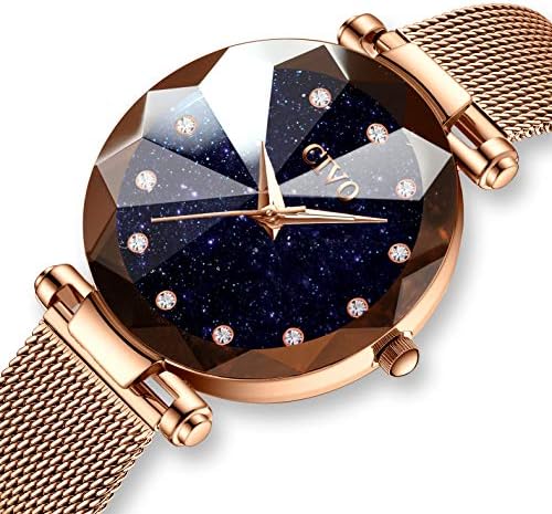 CIVO Montre Femme Or Rose Acier Inoxydable Montre Ciel étoilé Bracelet à Quartz Analogique Etanche Luxe Mode Montres pour Femme Entreprise Élégant